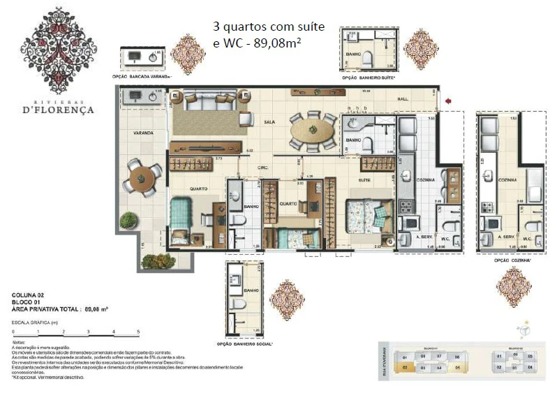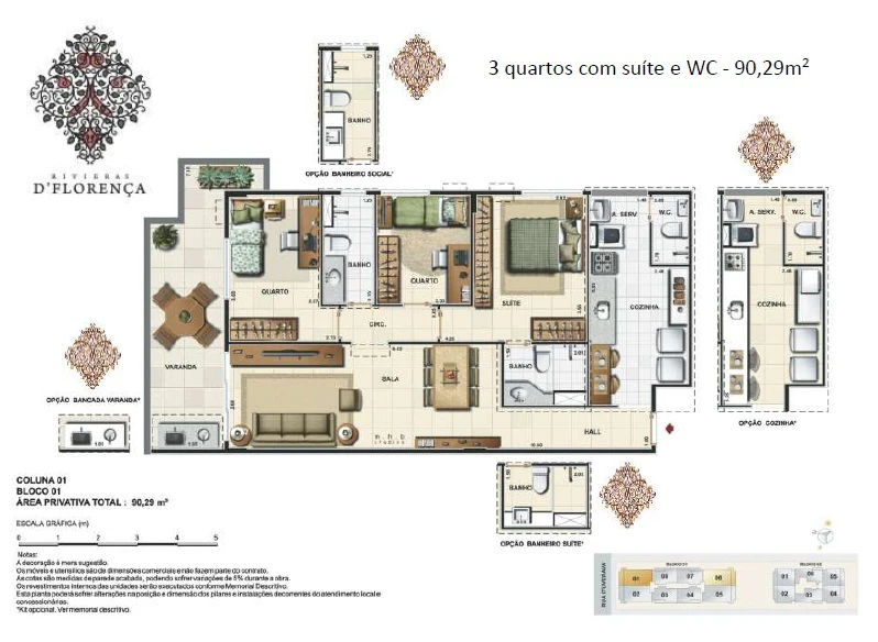 Apartamentos de 3 quartos com suíte e WC - 90,29m2;