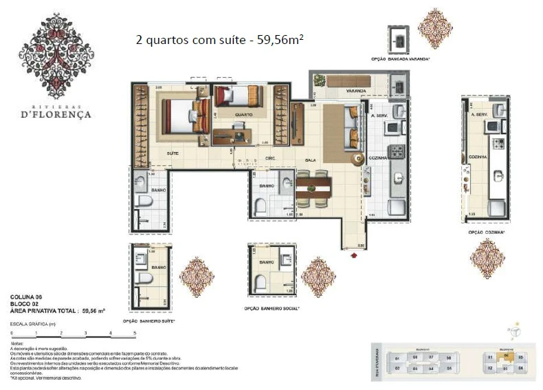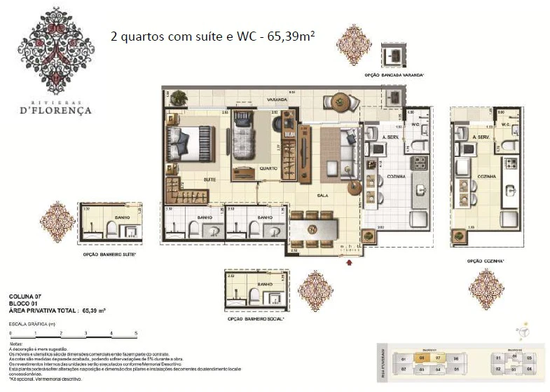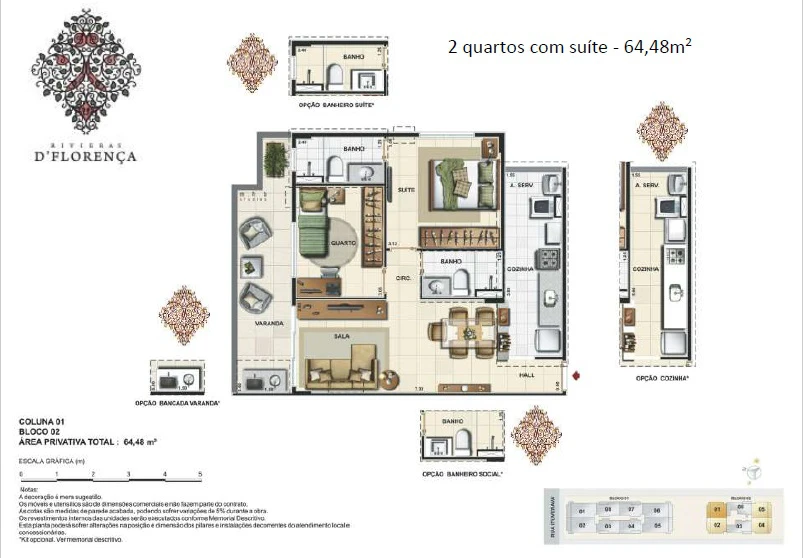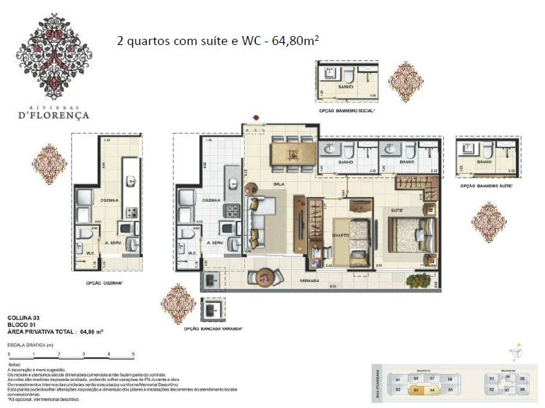 Apartamentos 2 quartos com suíte de 57m² até 65,48m2;